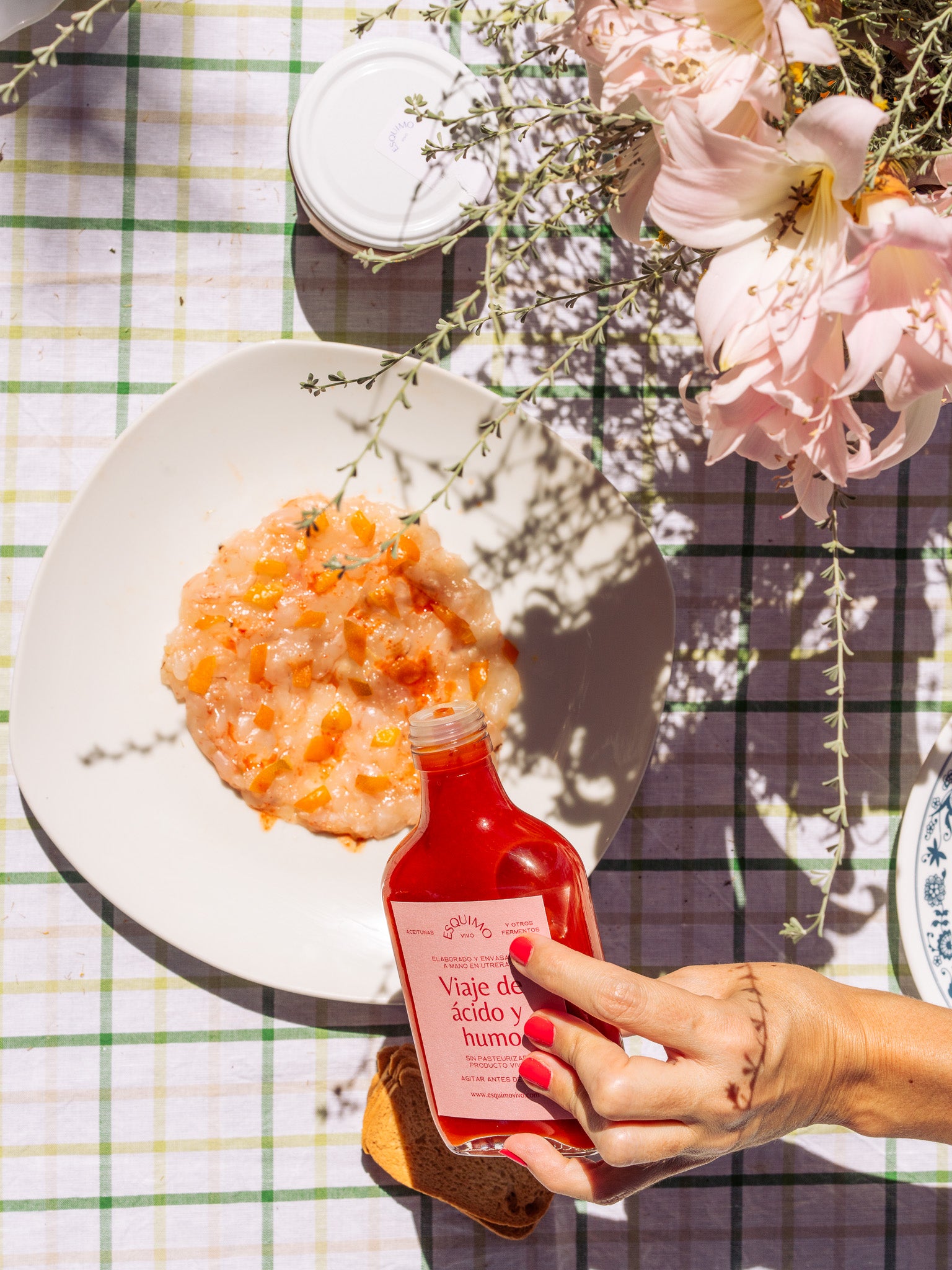 Todos nuestros procesos son totalmente manuales. Recolección, fermentación, selección, aliñado, envasado y etiquetado.